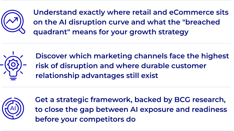 AI is changing how consumers discover, evaluate, and buy. This exclusive report from Moloco and BCG reveals where retail and eCommerce sits on the disruption curve, what's at risk, and what growth leaders are doing to protect and grow their customer relationships.